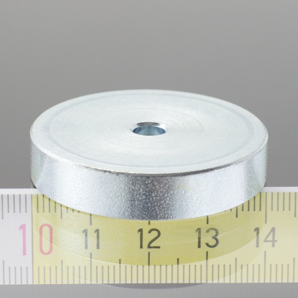Aimant en pot diam. 40 x hauteur 8 mm, trou à l'intérieur destiné à une vis à tête fraisée diam. 5,4 mm
