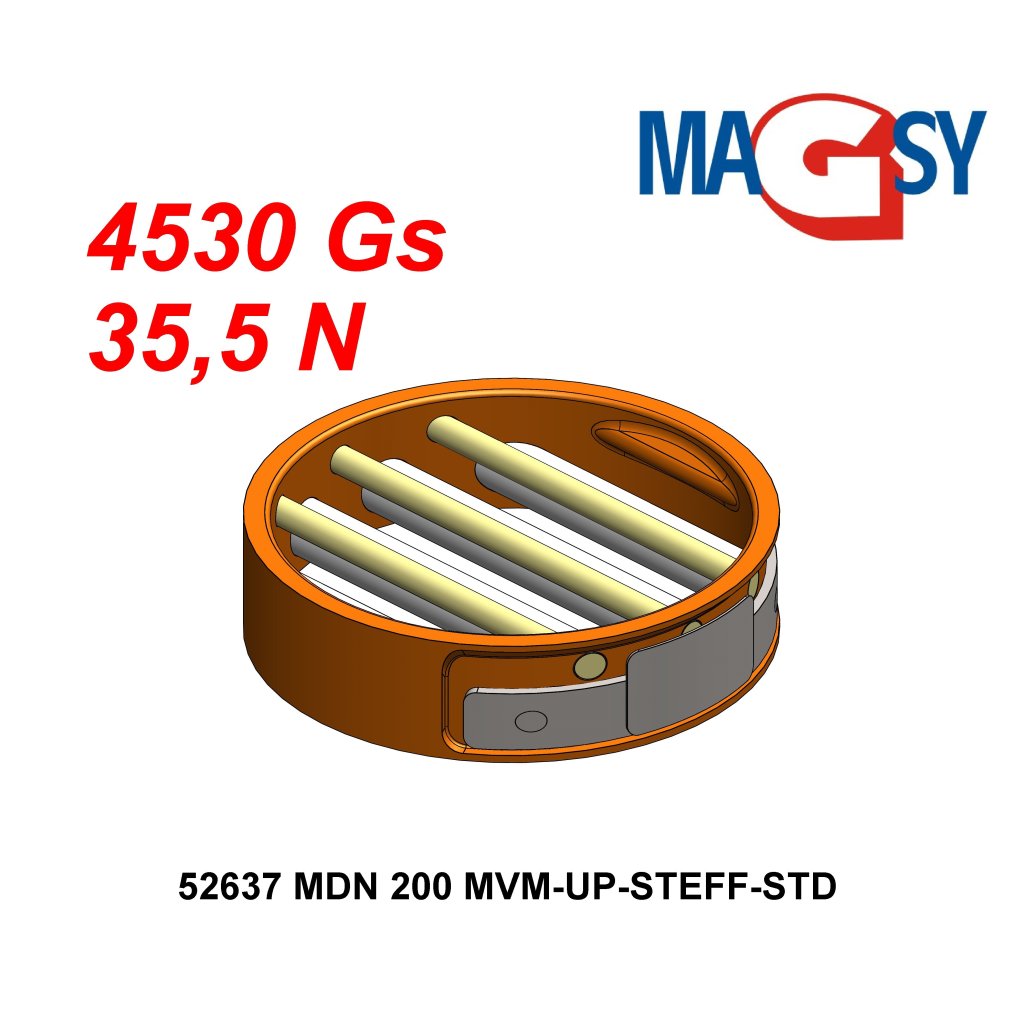 Grille magnétique de trémie MDN 200 MVM-UP-STEFF-STD, 4.530 Gs, 35.5 N