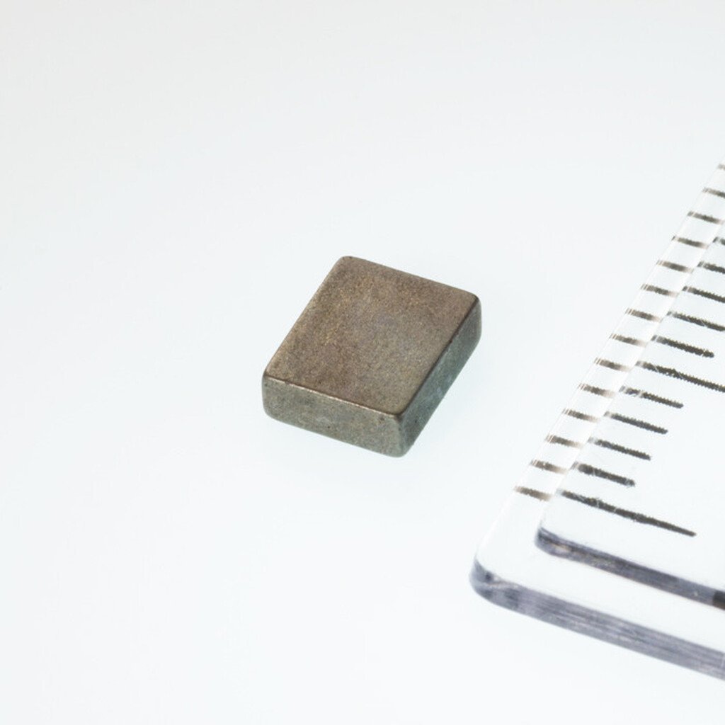 Tento pasivovaný neodymový magnetový kvádr s rozměry 5x4x1,6 mm disponuje maximální pracovní teplotou 180°C. Jakmile tuto teplotu přesáhne, ztrácí své vlastnosti. Odtrhová síla tohoto magnetu činí 4,4 N. Magnet je magnetován kolmo na plochu.