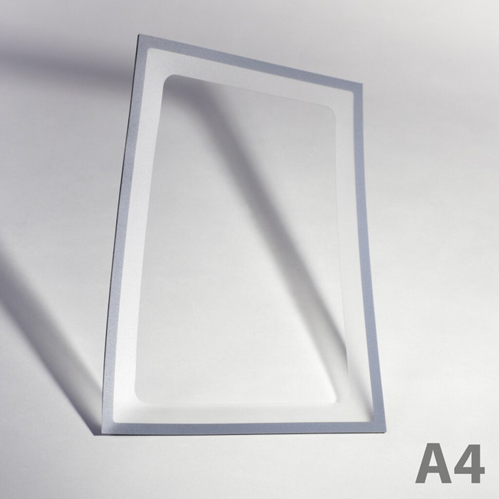 Vous cherchez le meilleur endroit pour rendre vos documents visibles ? Procurez-vous une pochette magnétique avec une découpe pour document A4 et accrochez-la comme un tableau. Le cadre magnétique est bordé de bleu. Sous le cadre se trouve une pochette transparente avec une découpe permettant de placer facilement des documents papier, des photos et d'autres éléments.