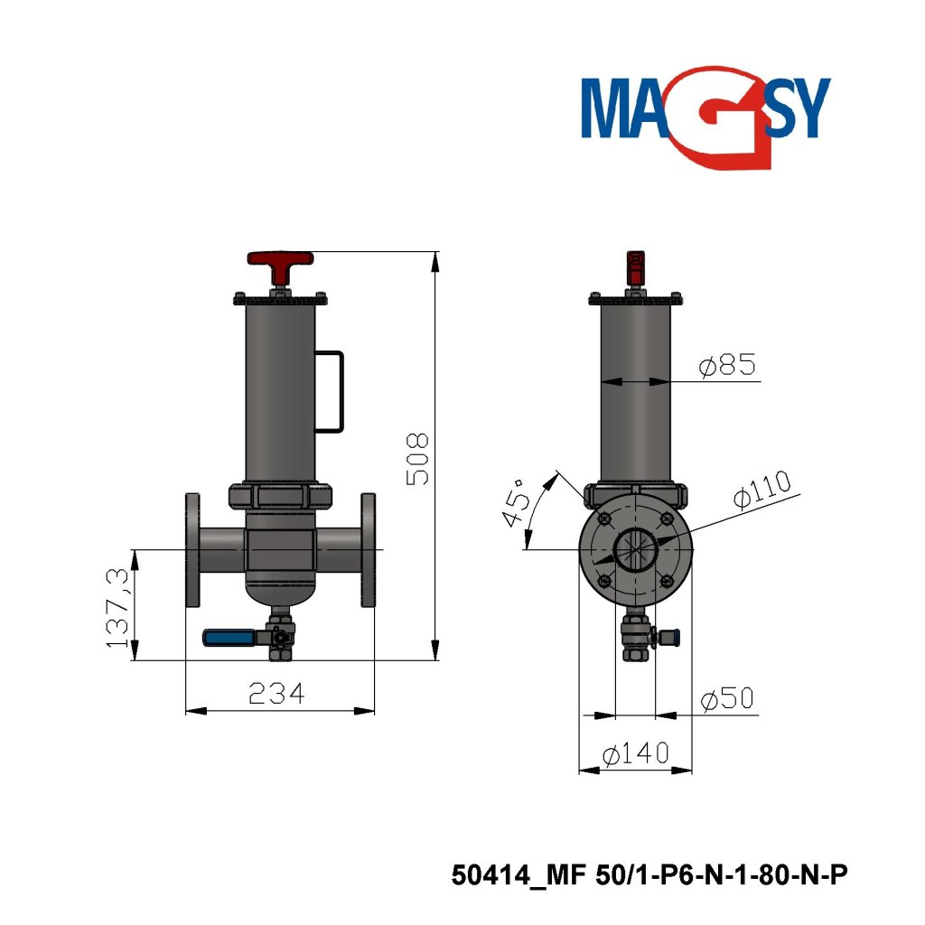 Séparateur magnétique de débit MF 50/1-P6-N-1-80-N-P