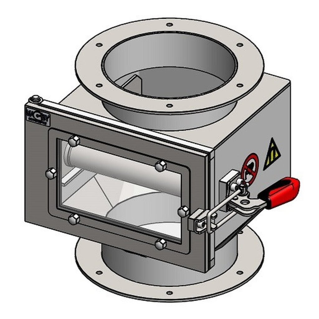 Le séparateur magnétique ne peut être utilisé que dans le cadre d'opérations non continues (lors du nettoyage manuel du séparateur magnétique, le flux de matériau à nettoyer doit être interrompu). Il doit être installé uniquement dans des conduites verticales (si l'installation verticale n'est pas possible, ne pas utiliser ce produit et contacter pour choisir un autre séparateur magnétique ou pour confirmer l'adéquation de son utilisation) par exemple dans l'industrie alimentaire et chimique, dans l'agriculture, dans l'industrie de traitement des déchets dans le domaine de la production de matériaux de construction voir la liste des matériaux appropriés ci-dessous.