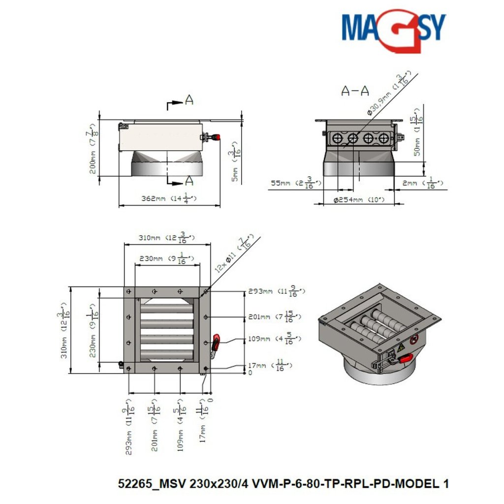 | Entrée/sortie: | 230x230 / DN 254 x 2 mm |