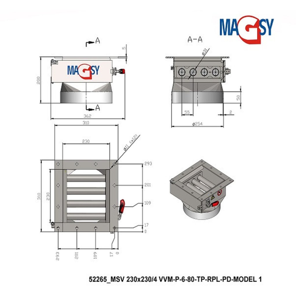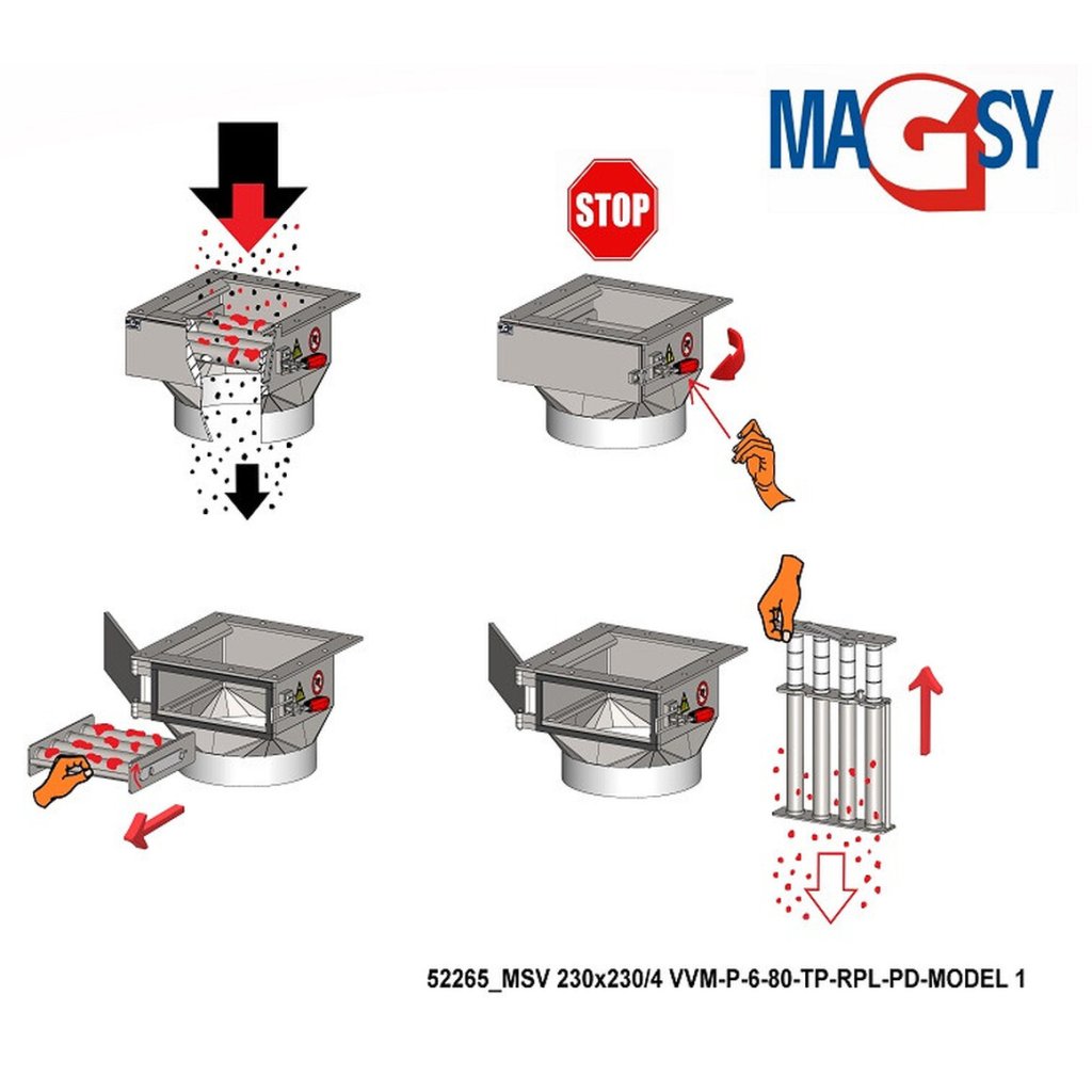Séparateur magnétique rétractable MSV 230x230/4 VVM-P-6-80-TP-RPL-PD-MODEL 1